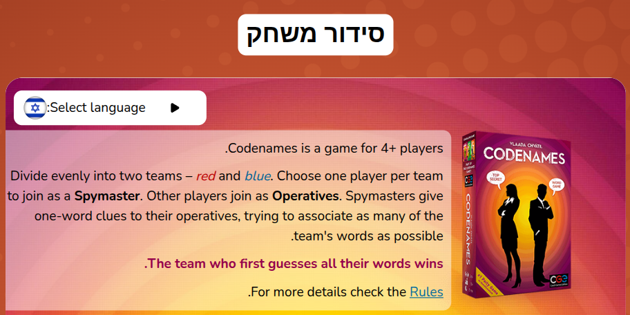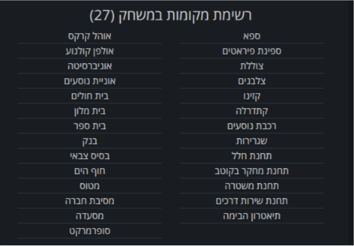 - במידה ומזהים כולם את המתחזה לפי השאלות, יש למתחזה אפשרות להגיד מה הוא המקום: